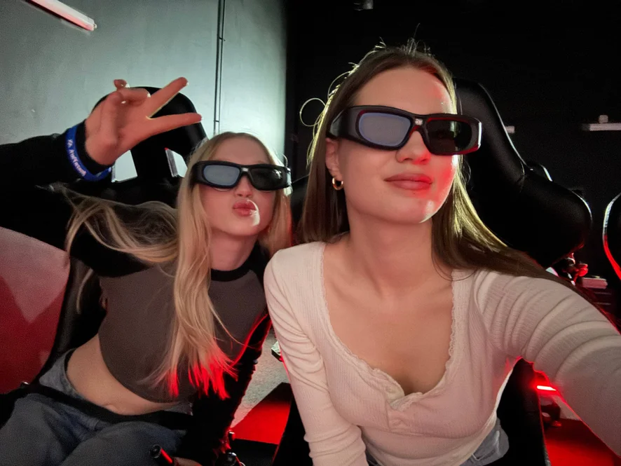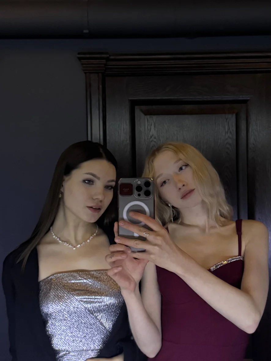 Two girls, one vibe: flirty, funny, and a little too cute.